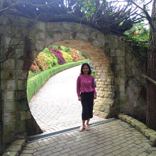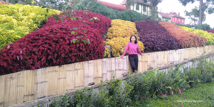 Ini adalah salah satu wahana yang saya sukak banget. Meski harus capek kukurilingan, tapi hepi. Soalnya pemandangan indah dari aneka warna bunga yang cantik bikin mata enggak lelah. Udah gitu, bisa poto-potoan dengan bebas juga di sini. Hm cocok banget buat Mommies yang hobi cekrak-cekrek upload di medsos ya. Tiket masuk ke Rainbow garden ini nggak mahal, hanya Rp 10.000 aja per orang. Murah kan?