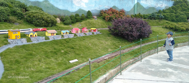 Tadinya kami pengen juga masuk Kota Mini, tapi dipikir-pikir sayang banget, harus bayar Rp 25.000 udah gitu di dalem penuh sesak sama pengunjung. Alamat foto bakalan jelek deh. Nggak akan indah kalau diupload hihihi. Yowes, kita skip aja berkunjung ke Kota Mini.