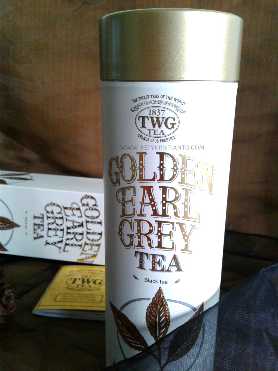 Sementara, di dalamnya masih ada kemasan kaleng berbentuk silinder gitu dengan warna dan desain yang senada. Kemasan berukuran 100 gram ini dilengkapi dengan buku kecil berisi daftar semua produk keluaran TWG Tea Company.